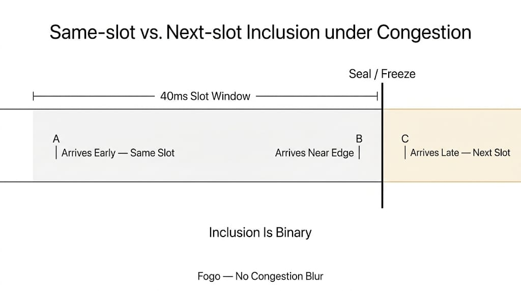 Arrival vs execution timestamps stay compressed. Same-slot inclusion or next-slot inclusion. Nothing in between.