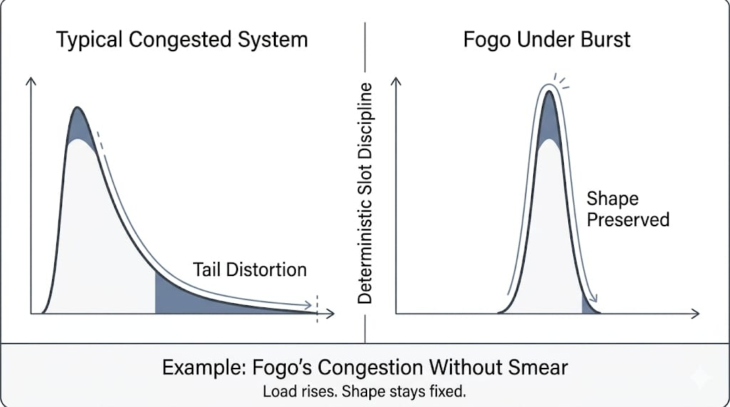 I scroll faster like I can catch the bend mid-air. Compute doesn't flare. Banking latency on Fogo SVM layer-1 holds. Histograms stay clean at the edges.