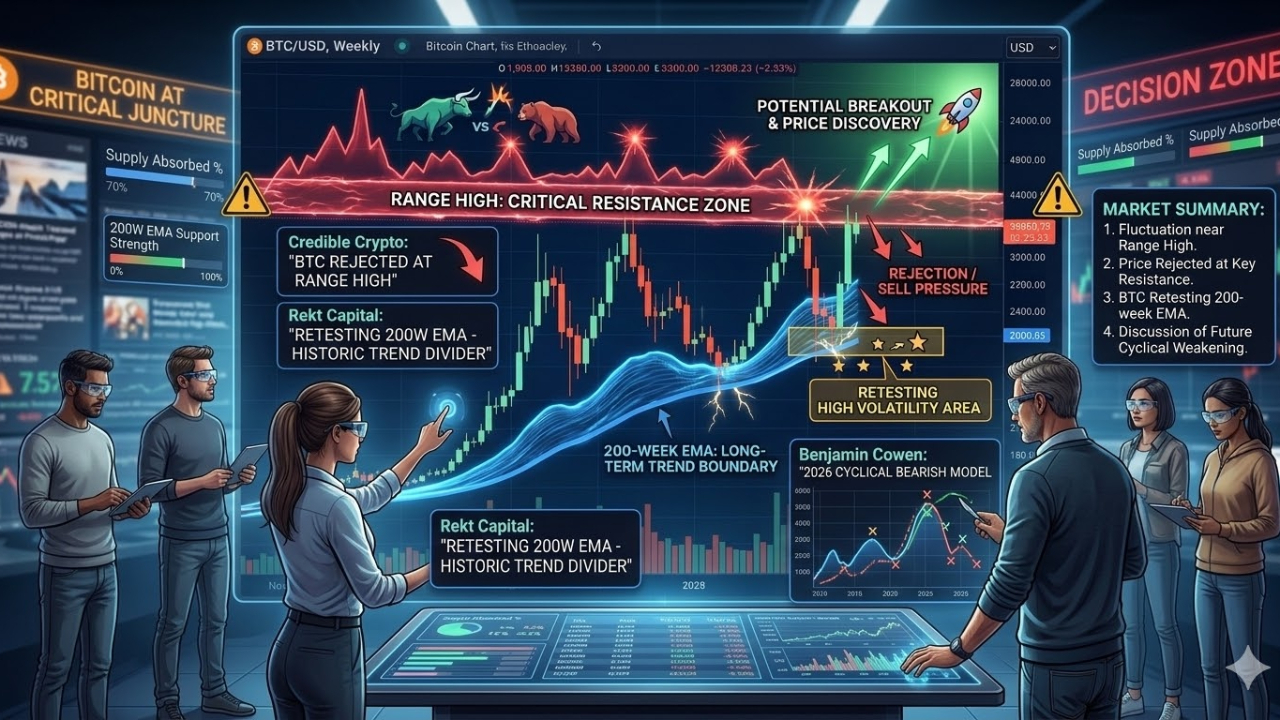 After the recent strong recovery, BTC is once again approaching the top of its trading range, but the buying pressure is still not strong enough to decisively break through this area. According to analysis from the well-known trader Credible Crypto, Bitcoin was just rejected at the range high, indicating that this remains a crucial resistance zone where many sell orders are waiting.