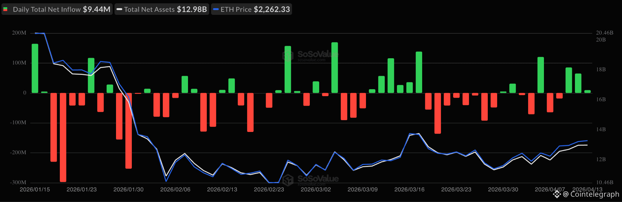 Ether’s apparent demand turned positive after rising to its highest level since Dec. 31, 2025, as hopes for a deal between the US and Iran boosted investor sentiment.