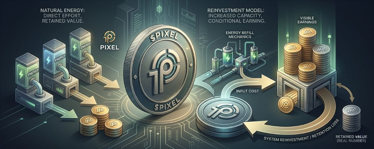 The more I sat with this, the more it felt like the system is not built around maximizing distribution, but around shaping behavior. $PIXEL does not just move outward as rewards, it circulates back into the system through energy, crafting, and progression decisions. That circular flow creates a quiet separation between players who participate and players who optimize.