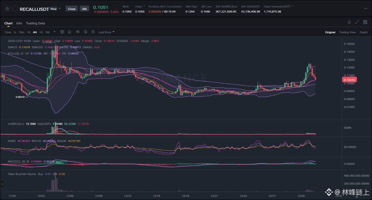A deeper examination of the 4-hour chart for the RECALLUSDT perpetual contract reveals several key technical elements. The primary structure has shifted from a clear range to a post-breakout test. The breakout itself was potent, but the subsequent rejection from the highs near the 0.1264 level is a significant counter-signal that warrants caution. This rejection formed a prominent upper wick on the candlestick, indicating that sellers aggressively defended that price zone.