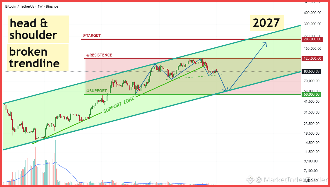 3. Target Downside: The immediate trajectory is pointing straight toward the lower boundary of the long-term channel. Our current downside target is the crucial $50,000 - $54,000 support zone. Expect high volatility and continued selling pressure until this deep support is tested.
