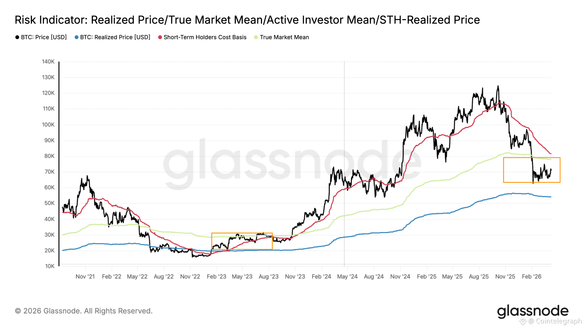 Glassnode’s risk indicator reveals a major resistance between the true market mean at $78,000 and the short-term holder cost basis level around $80,000.