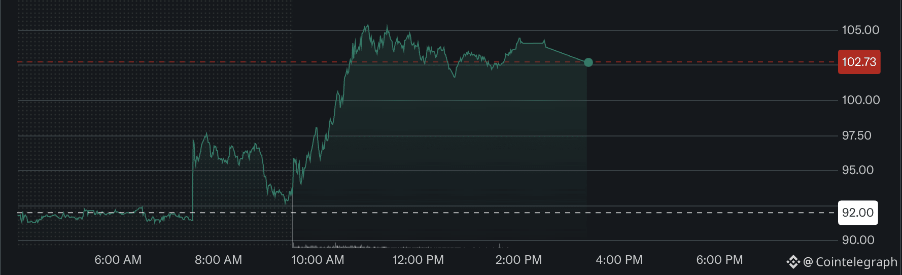 Shares of CoreWeave surged more than 12% on Friday and are trading at $102.73 at the time of writing.