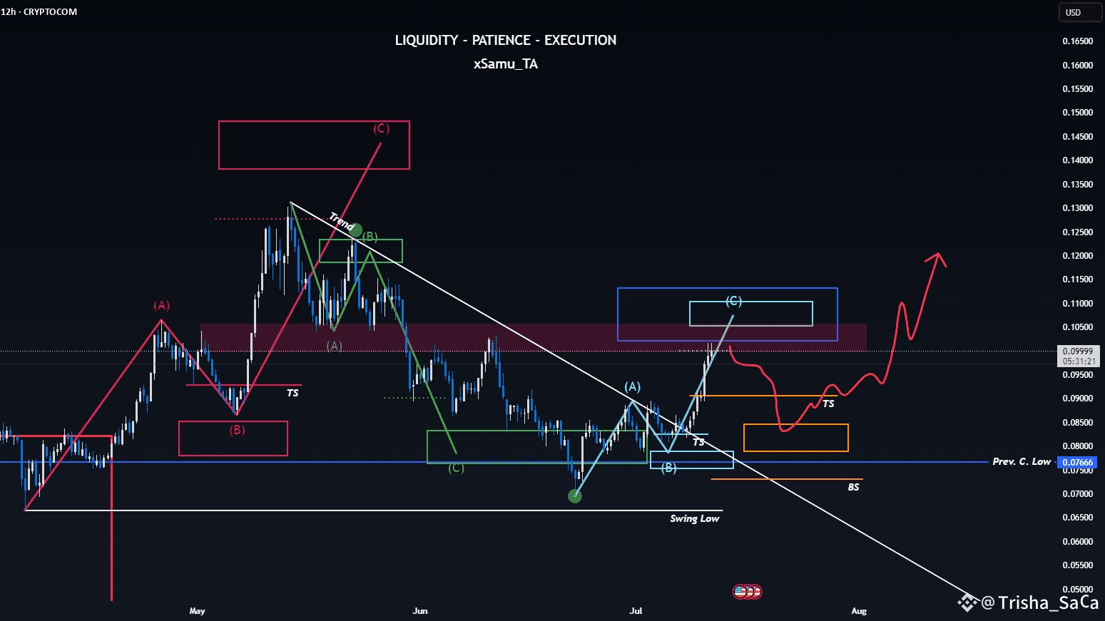 Wenn ich mir die vorherigen pinken und blauen Strukturen anschaue, wäre ich nicht überrascht, wenn GRT Stärke auf der orangefarbenen TS (Top Support) findet, um weiter nach oben zu drücken. Ich sehe jedoch keine vorzeitige reaktive Struktur, die darauf abzielt, den nächsten wichtigen Widerstand bei 0,24 $ zu erreichen.