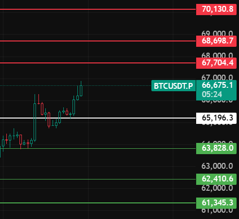 Beachte Bitcoin über Nacht bei 65200, solange der Rückgang nicht unter diese Position fällt, bleibt der Aufwärtstrend bestehen. Achte auf die Widerstandslevels 67700-68700-70130 in der oberen Region!