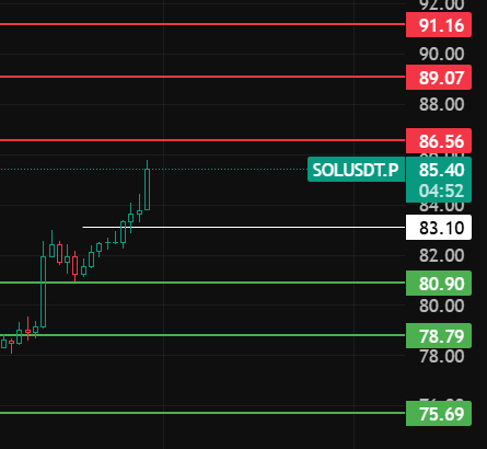 Beachte SOL über Nacht bei 83, solange der Rückgang nicht unter diese Position fällt, bleibt der Aufwärtstrend bestehen. Achte auf die Widerstandslevels 86-89-91 in der oberen Region!
