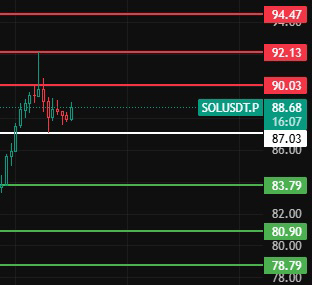 Achten Sie heute auf die Position 87 bei SOL, solange der Rückzug diese Position nicht bricht, bleibt der Aufwärtstrend bestehen. Achten Sie auf die Widerstandspositionen 90-92-94!