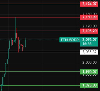 Achten Sie heute auf die Position 2035 bei Ethereum, solange der Rückzug diese Position nicht bricht, bleibt der Aufwärtstrend bestehen. Achten Sie auf die Widerstandspositionen 2105-2150-2195!
