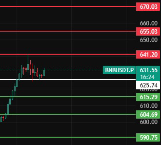 Wenn heute der Rückzug unter 625 fällt und sich nicht wieder erholt, beginnt die Korrektur auf 1-2 Stunden Ebene. Achten Sie auf die Unterstützung bei den Positionen 615-604-590!#BNB走势