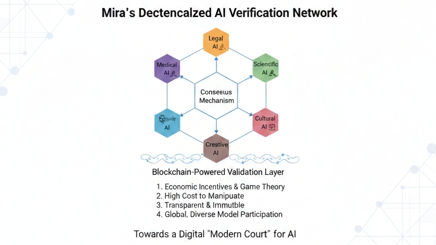 Mira's härteste Methode ist es, diesen Konsensmechanismus auf die Blockchain zu bringen. Es ist nicht mehr nur ein einfaches Modell, das übereinander gestapelt wird, sondern es wurde ein dezentrales Validierungsnetzwerk aufgebaut. Möchtest du den Konsens manipulieren? Tut mir leid, das kostet enorme wirtschaftliche und rechnerische Aufwendungen. Diese Validierungsschicht, die durch wirtschaftliche Anreize und Spieltheorie aufgebaut wurde, ist wie eine digitale Fessel für die rasenden KI, und sie bietet auch einen Spiegel, der die Dämonen offenbart. Es hängt nicht mehr vom Vertrauen einer bestimmten Autorität ab, sondern lässt Modelle, die weltweit verteilt sind und unterschiedliche Kulturen und Fachgebiete repräsentieren, gegeneinander spielen, um am Ende einen belastbaren Beweis zu liefern. Diese Logik erinnert mich an eine Metapher: Die heutigen KI-Modelle sind wie Lehrlinge, die noch nicht ausgebildet sind, jeder mit eigenen geheimen Absichten und Stärken, während Mira dabei ist, ein wasserdichtes modernes Gericht aufzubauen, das die Absurdität des Individuums mit der Gerechtigkeit von Programmen einschränkt. In dieser digitalen Welt sind einzelne Genies oft unzuverlässig; nur dieses kalte, transparente und unveränderliche Container-Kooperationsnetzwerk ist der letzte Kilometer auf dem Weg zur echten allgemeinen künstlichen Intelligenz.