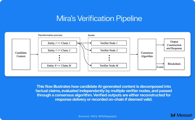 • Distributed Verifier Network: Multiple independent models evaluate claims to reduce single-point bias.