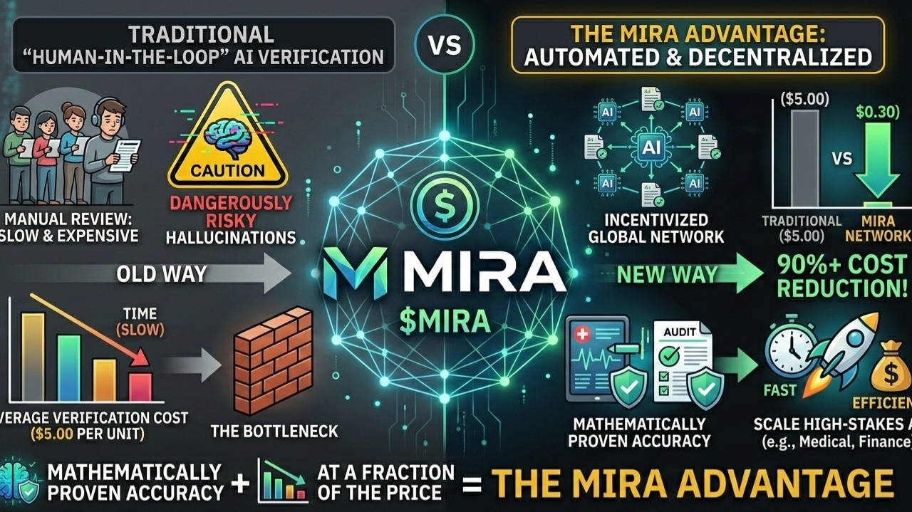 Traditional AI verification is the ultimate bottleneck—it’s either painfully slow due to manual human review or dangerously risky due to model hallucinations. Mira Network shatters this paradigm with an automated, decentralized verification layer that’s already saving developers over 90% in operational costs. 🚀