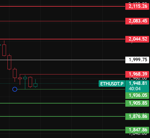 以太夜间留意2000这个位置,只有站稳此位置上方1-2小时级才开始反弹,上方压力位留意2044-2083-2115这几个位置附近!