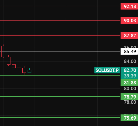 如果夜间反弹上不去85上方,那说明反弹没有力度,继续下跌下方支撑位留意81-78-75这几个位置附近!#solana