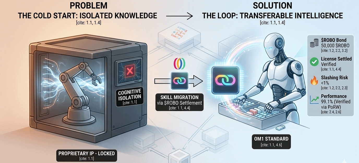 I have been looking at the Fabric Foundation's architecture and I realized that the biggest tragedy in robotics today is that skills are Silicon Refugees. they are trapped inside the hardware they were born in. If a humanoid in a factory learns how to perfectly sort medical supplies that knowledge dies with that specific machine or remains locked in a proprietary database. This is the Cold Start Problem. Every new robot fleet has to spend months of compute power re-learning basic physics because there is no universal bridge for machine intelligence.