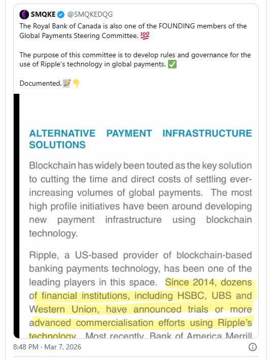 Zusammengefasst illustrieren die von SMQKE hervorgehobene Dokumentation und die begleitenden Kommentare, wie bedeutende Finanzinstitute strukturierte Zusammenarbeit rund um die Technologie von Ripple erkundet haben.