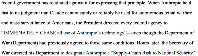 An excerpt from Anthropic’s suit claiming US President Donald Trump ordered federal agencies to stop using its tech after the government had agreed to its terms. Source: CourtListener