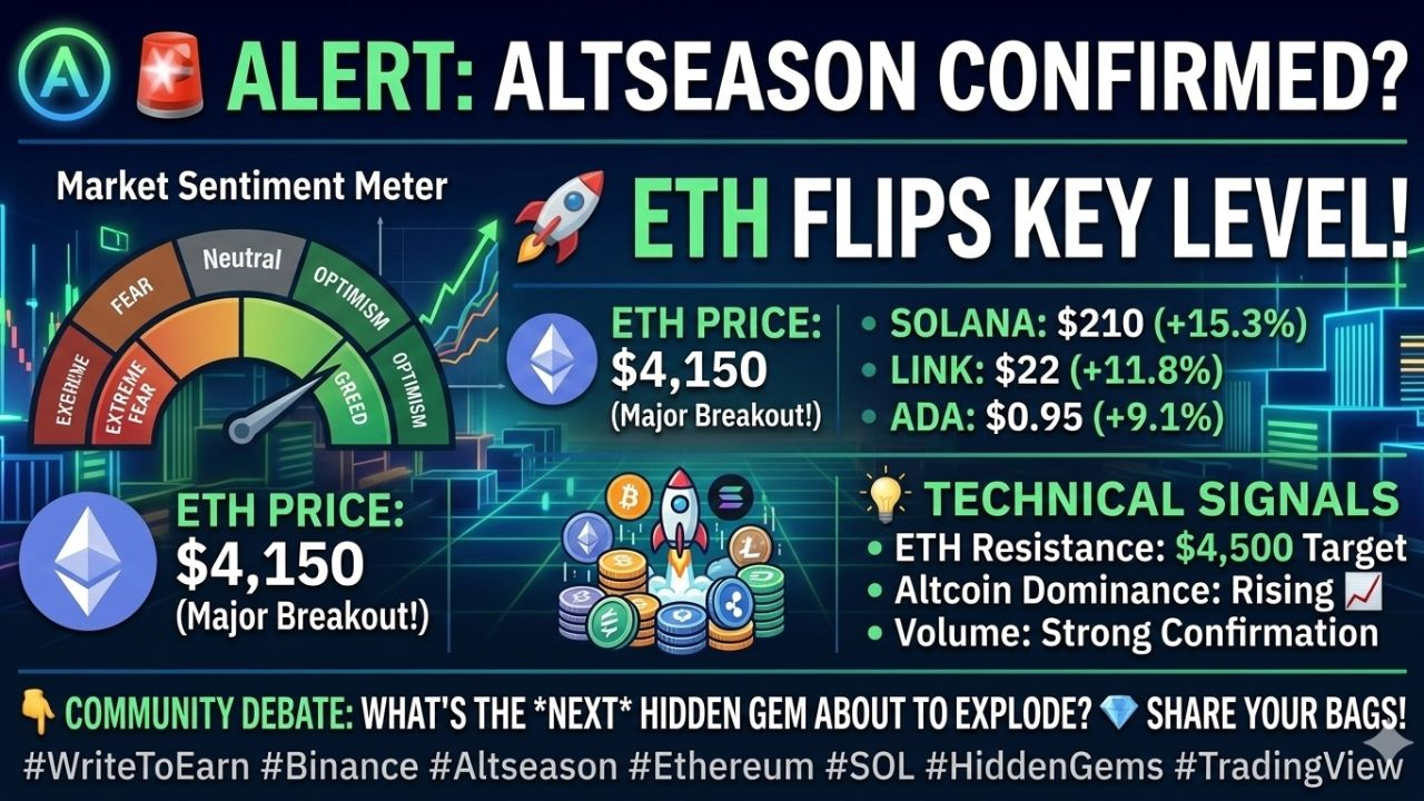 Die dominante Erzählung ändert sich schnell! Während Bitcoin konsolidiert, finden die wirklichen Feuerwerke im Altcoin-Markt statt. Kapital rotiert aus BTC und strömt in hochnützliche Ökosysteme. Ethereum (ETH) hat offiziell seinen primären psychologischen Widerstand überschritten und sendet ein massives "Risk-On"-Signal an den gesamten Markt!