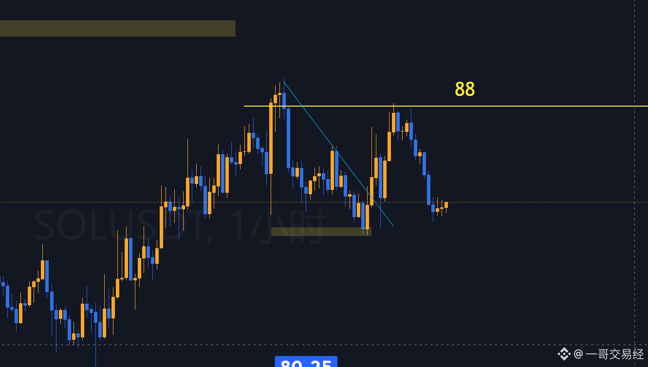 跟随大饼反弹再次回抽88一带压力后, 开启向下回落.