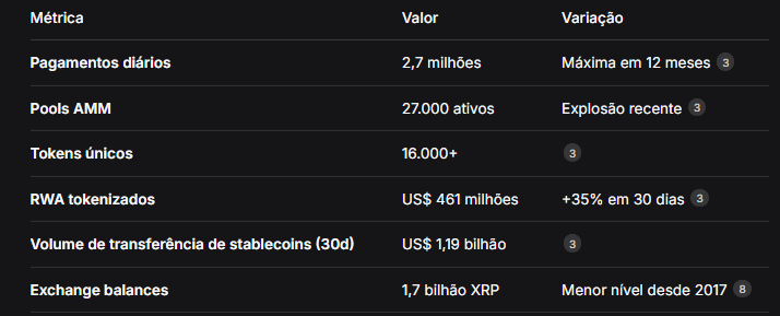 Stablecoins (RLUSD): Transações em stablecoin usam o XRP como "ponte" por frações de segundo, sem criar demanda sustentada pelo token