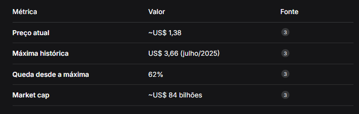 Disclaimer: Este relatório foi elaborado com base em informações públicas de fontes como 21Shares, Standard Chartered, Investing.com, Benzinga, CoinMarketCap e outras. Nada aqui constitui recomendação de investimento. O mercado de criptomoedas envolve riscos significativos. Faça sua própria pesquisa (DYOR).