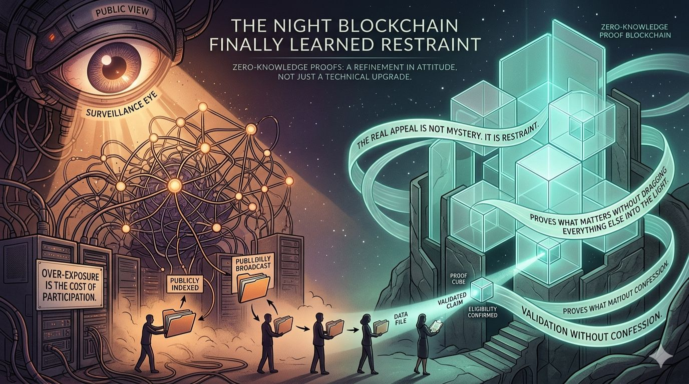 Das ist einer der Gründe, warum Zero-Knowledge mehr als eine Randfascination geworden ist. Es geht nicht nur darum, Details zu verbergen. Es geht darum, Systeme zu bauen, die selektiver, effizienter und weniger verschwenderisch in dem sind, was sie von Menschen und vom Netzwerk selbst verlangen.