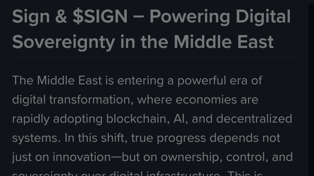 The Middle East is entering a powerful era of digital transformation, where economies are rapidly adopting blockchain, AI, and decentralized systems. In this shift, true progress depends not just on innovation—but on ownership, control, and sovereignty over digital infrastructure. This is where @SignOfficial plays a critical role.