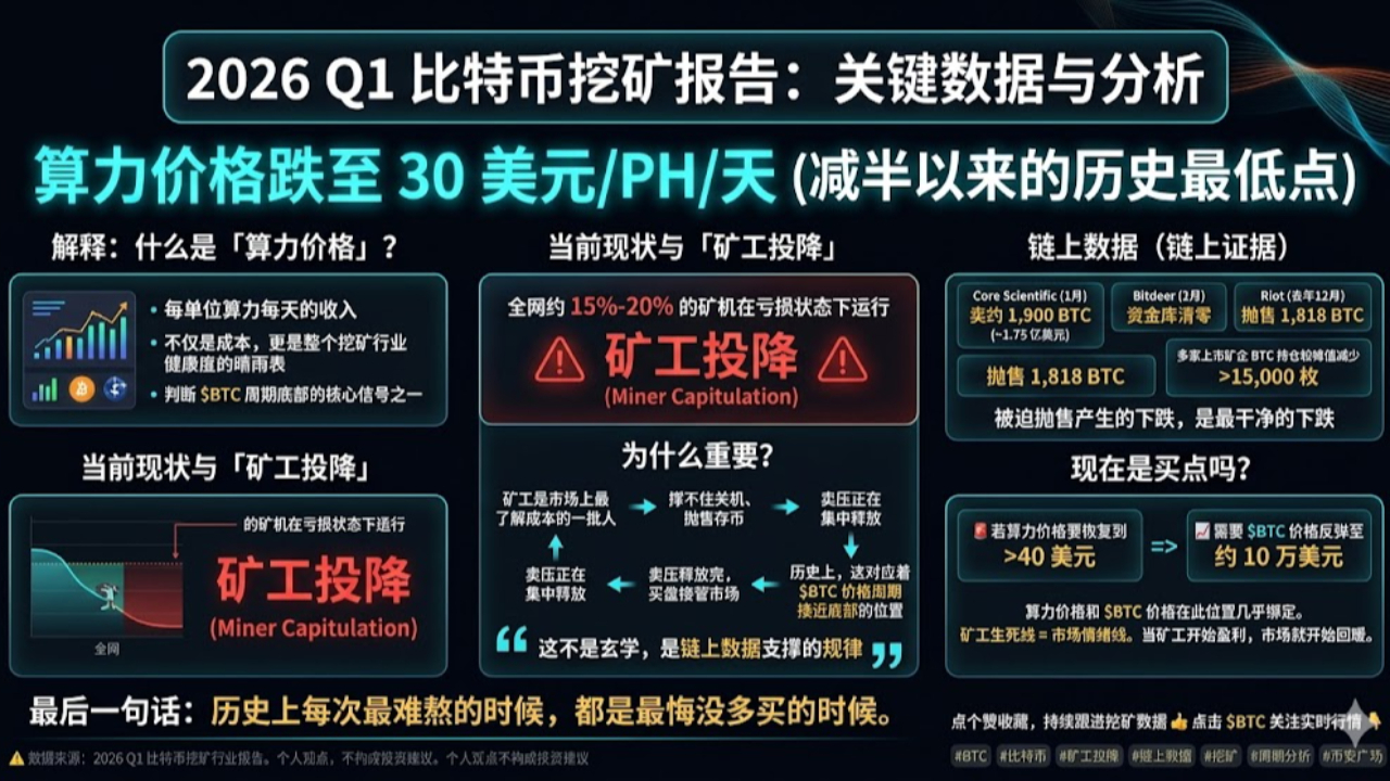 ⚠️ 数据来源:2026 Q1 比特币挖矿行业报告。个人观点,不构成投资建议。