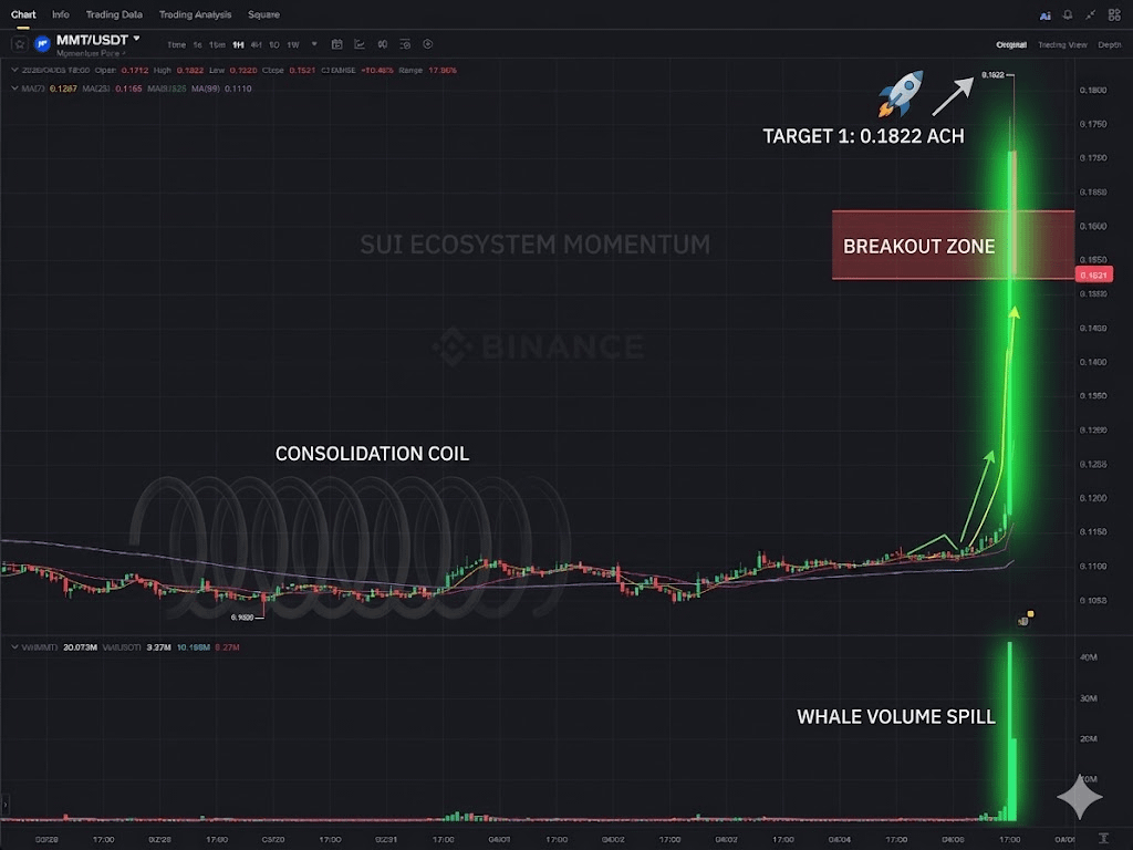 Massive Breakout: After days of boring consolidation under $0.115, MMT finally snapped. The break above key resistance triggered a massive short squeeze.
