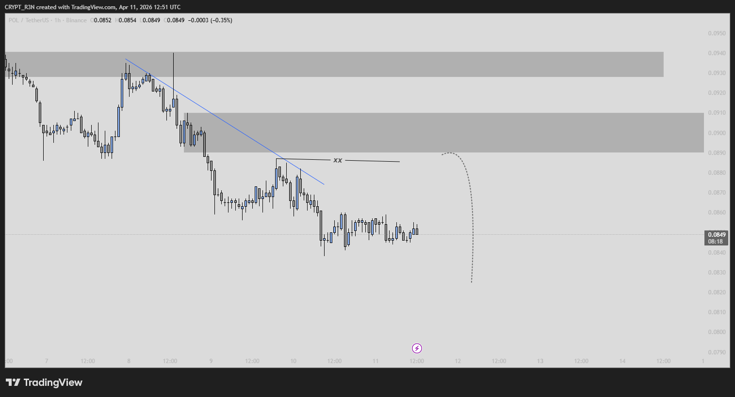 يتماشى ذلك مع المزاج العام الهابط في سوق العملات البديلة (Altcoins)، حيث تقل السيولة ويصبح المتداولون أكثر حذرًا. بالنسبة لـ POL$POL، العامل الحاسم هو ما إذا كان المشترون قادرين على الدفاع عن المستوى الحالي وكسر خط الاتجاه الهابط.