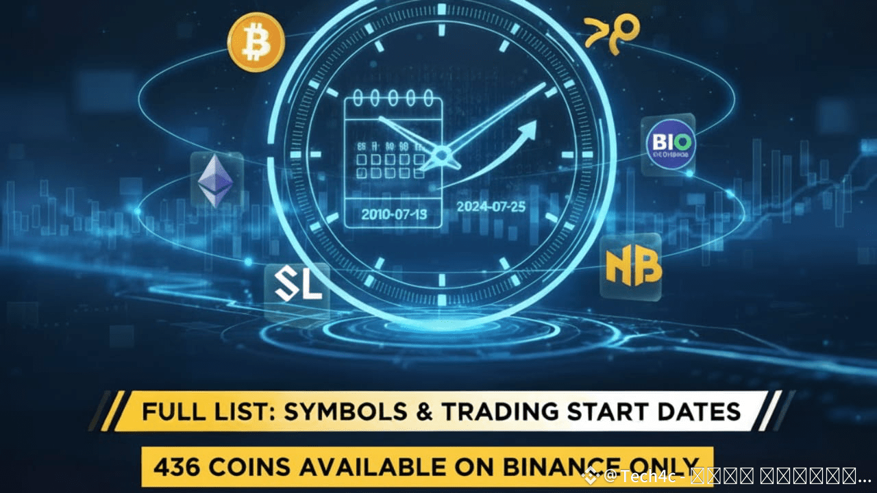 436 Kryptowährungen auf Binance, Symbol + Name + sortiert nach dem Startdatum der Währung für den Handel