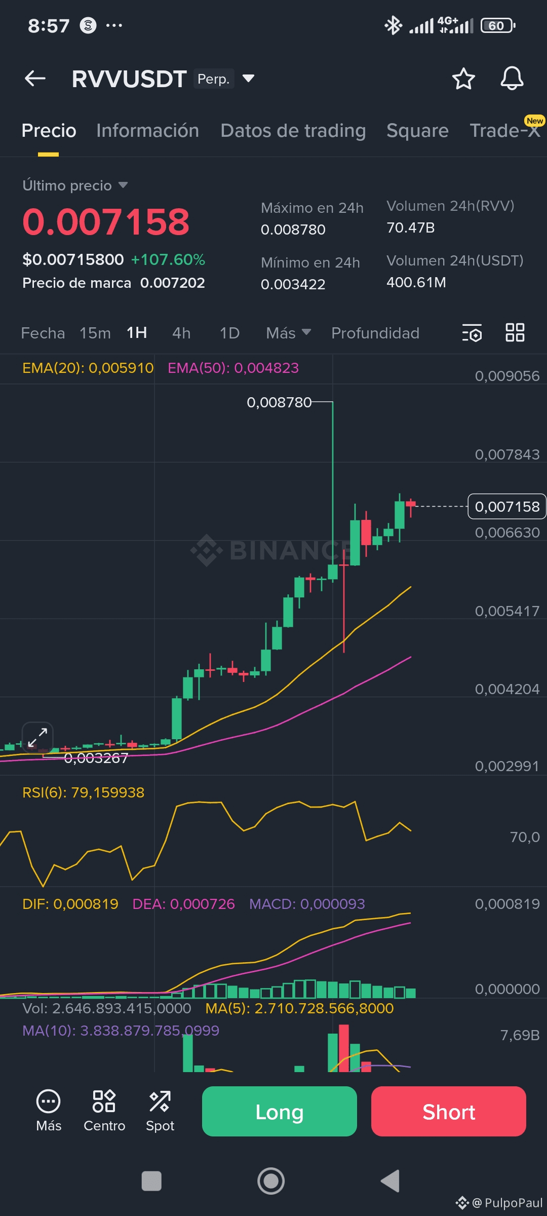 $RVV USDT muestra una tendencia alcista fuerte luego de un movimiento explosivo de más del +100% en pocas horas.