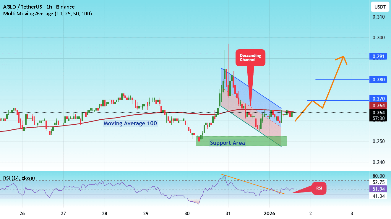 Es gibt eine wichtige Unterstützungszone in grün bei 0,250, und der Preis ist von diesem Niveau mehrmals zurückgeprallt. Ein weiterer Rückprall wird erwartet.
