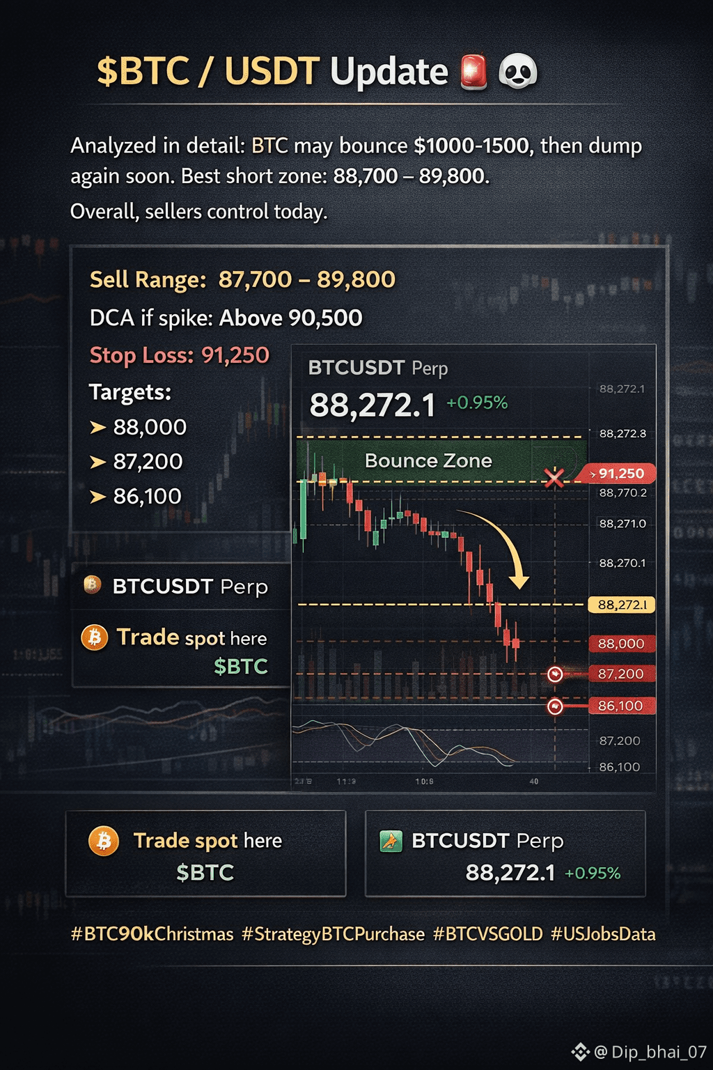 The 88,700 – 89,800 zone is a strong resistance and an ideal short area as sellers remain in control 📉
