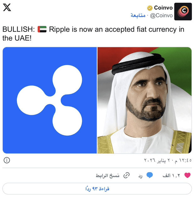 تحصل مدفوعات $XRP في الإمارات على دفعة قوية بفضل الاعتراف بها كعملة ورقية. إذ يمكن للشركات استخدام XRP لإجراء تسويات فورية دون الاعتماد على الوسطاء. وهذا يقلّص التكاليف ويقضي على التأخيرات في المعاملات العابرة للحدود. وتتحسن الكفاءة عبر قنوات التجارة والتحويلات.