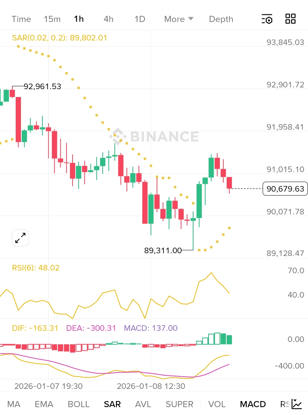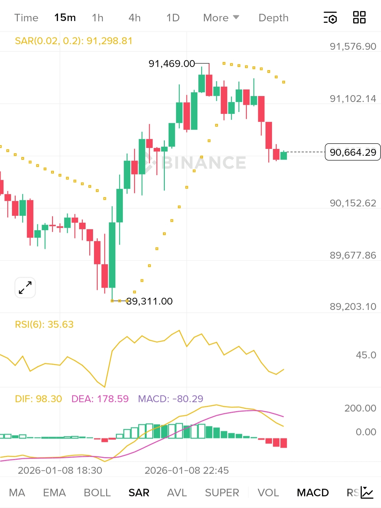 SAR: Über dem Kurs → 4H-Trend ist bärisch