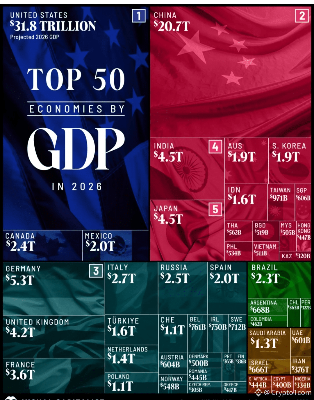 The United States remains the world’s largest economy, accounting for over $31.8 trillion in GDP.
