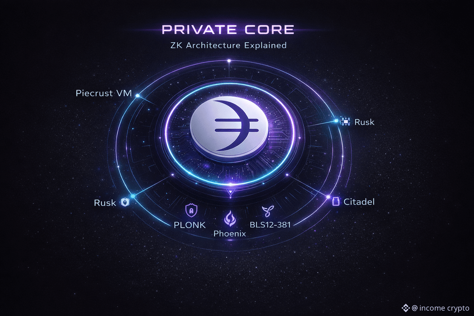 BLS12-381, JubJub, PLONK, Phoenix - The stack mixes widely adopted curves (BLS12-381), efficient elliptic choices (JubJub), and succinct proof systems (PLONK + Phoenix optimizations). What matters: proofs remain compact and verifiable on-chain without bloating block size. As a result, privacy proofs don’t become a DOS vector or gas sink.