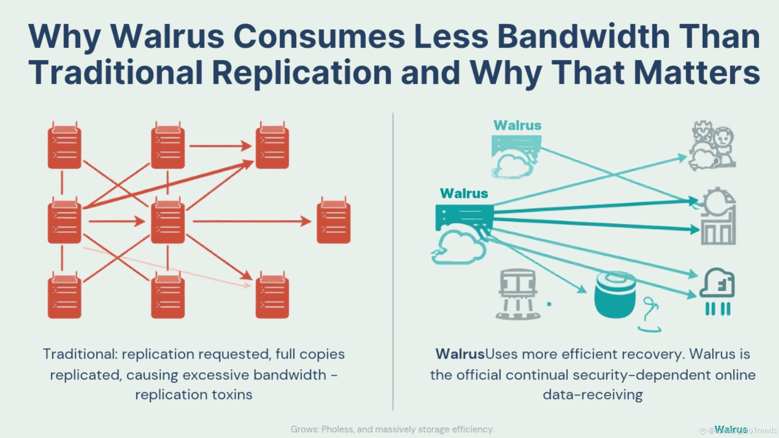 This efficiency isn’t just a technical curiosity—it’s a critical advantage for modern, global, decentralized storage networks. In many cases, bandwidth is the most limited and expensive resource, especially when nodes are spread across different cloud providers, countries, or even continents. Walrus’s approach means: