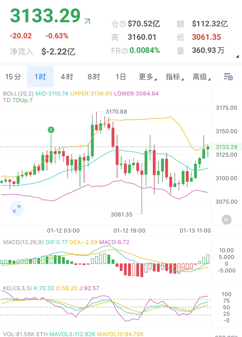 Die technische Form von Ethereum ist bärisch, der MACD auf Tagesbasis zeigt kontinuierlich eine abnehmende Volumen, die Erholungsdynamik ist unzureichend; auf Vier-Stunden-Basis sind die gleitenden Durchschnitte flach, insgesamt befindet sich der Markt in einem schwachen Korrekturzustand, die Tagesvolatilität wird voraussichtlich begrenzt sein. Kurzfristige Widerstände liegen bei 3160 und 3200, während die Unterstützung im Bereich von 3050 und der runden Marke 3000 zu beachten ist. Wichtig ist, ob es im Abendhandel gelingt, die Stagnation zu durchbrechen.