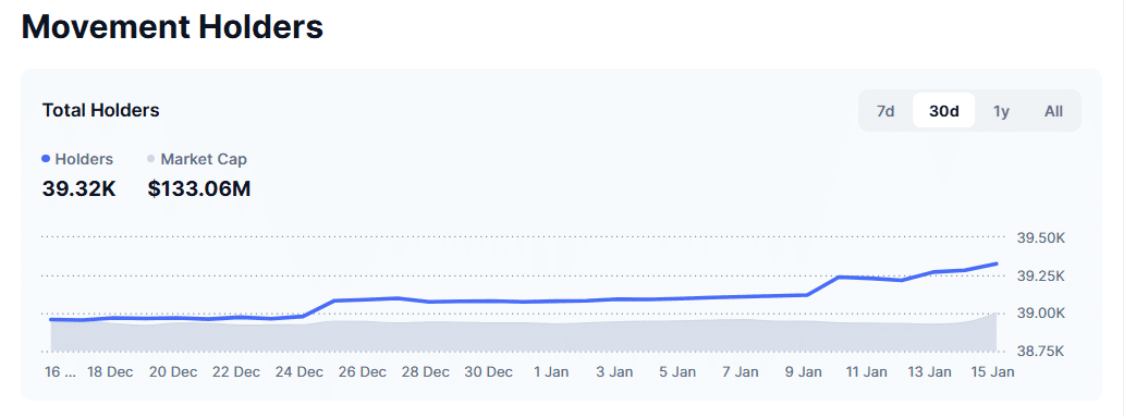 Laut Netzwerkanalysen bestätigt die Marktaktivität von MOVE ebenfalls den Aufwärtstrend. Seit dem 9. Januar ist die Zahl der Inhaber kontinuierlich gestiegen und liegt derzeit bei 393.200. Das Handelsvolumen der letzten sieben Tage bleibt stabil, im Durchschnitt über 550.000 Transaktionen pro Tag, das gesamte Handelsvolumen dieser Woche beträgt etwa 4,2 Millionen Transaktionen.