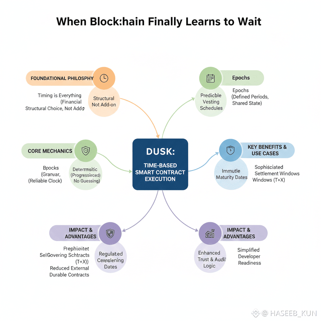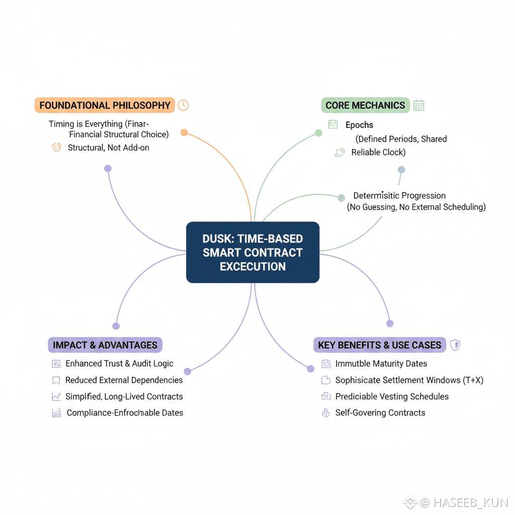 Time-based smart contract execution on Dusk is not an add-on or a clever workaround. It is a structural choice—one that allows contracts to execute actions based on time, epochs, and block heights, the same way financial agreements operate in traditional systems. This design positions Dusk as a blockchain that doesn’t just move value, but understands financial timelines.