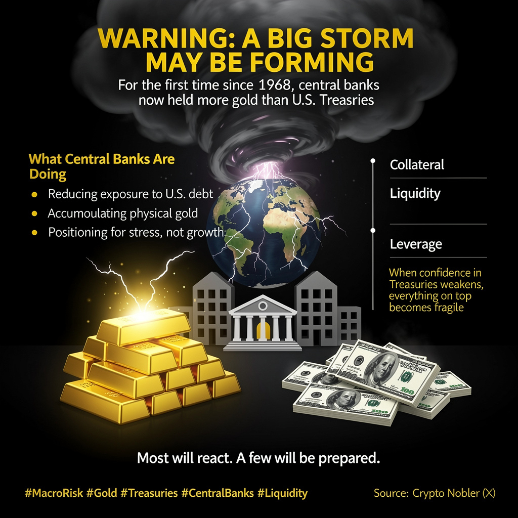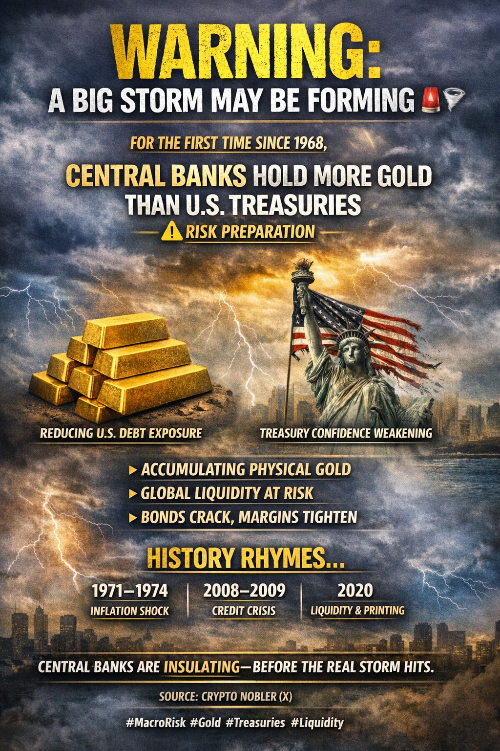 🚨 Zum ersten Mal seit 1968 halten Zentralbanken jetzt mehr Gold als US-Staatsanleihen.