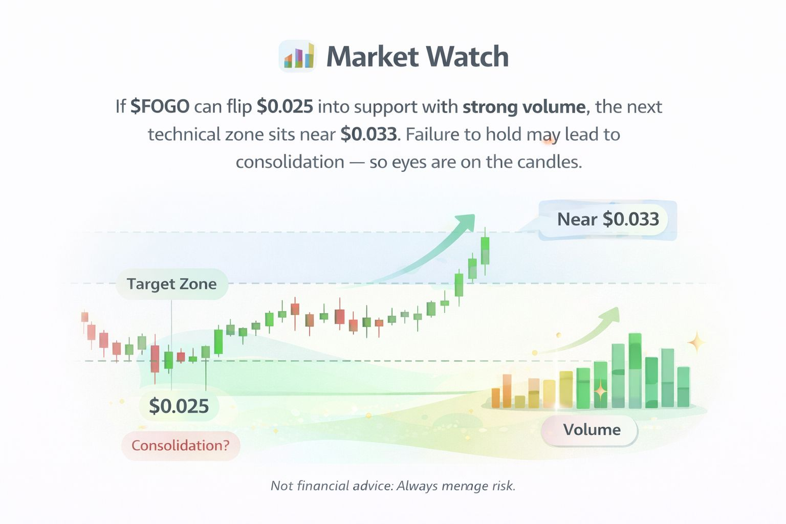 If $FOGO can flip $0.025 into support with strong volume, the next technical zone sits near $0.033. Failure to hold may lead to consolidation — so eyes are on the candles.