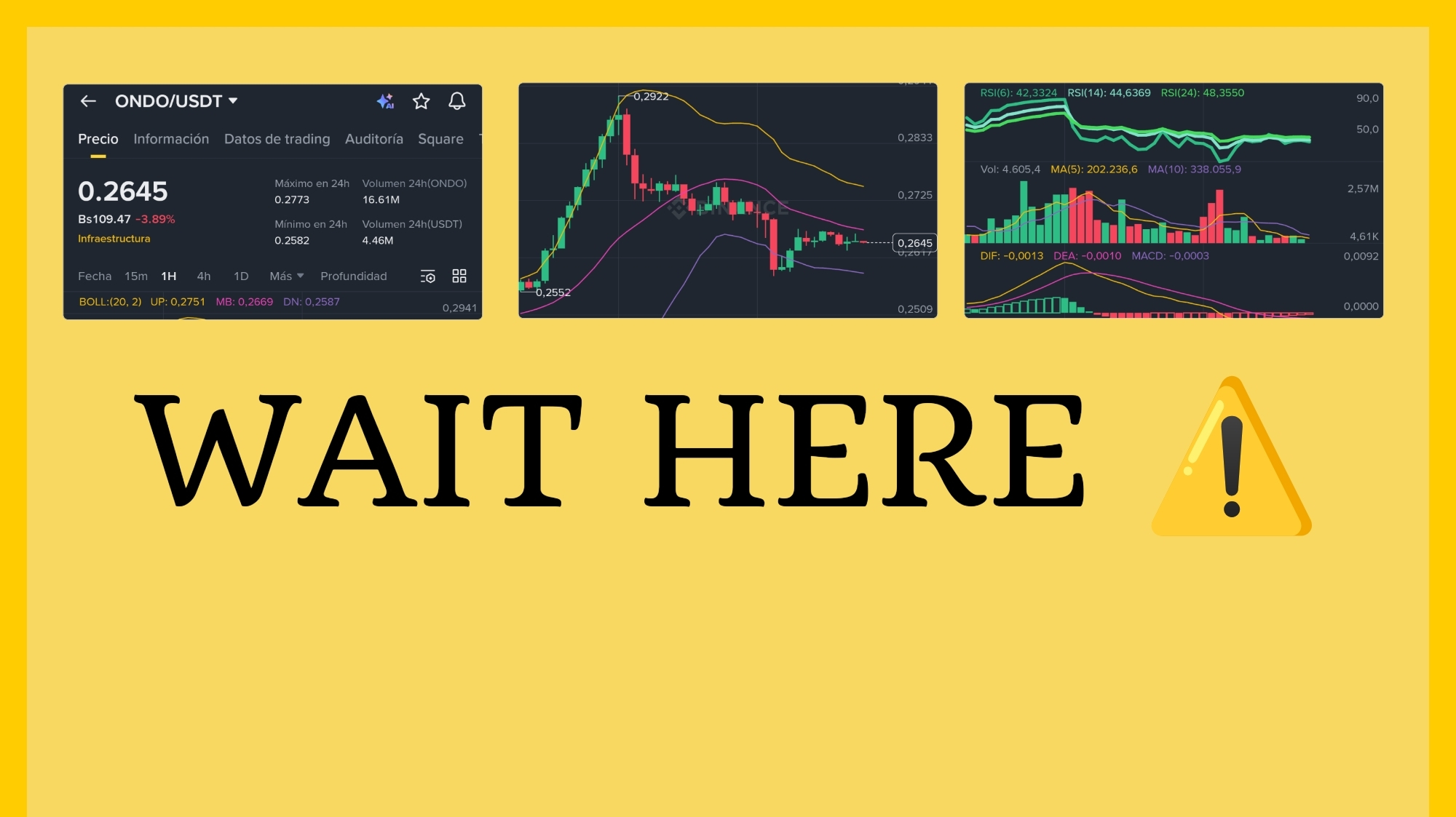 $ONDO is currently trading at $0.2645, down nearly 4%. The MACD shows a bearish crossover on the 1H timeframe. Smart money is waiting for the $0.2587 support level to enter. Don't let FOMO ruin your portafolio. Patience is key tonight! 💎