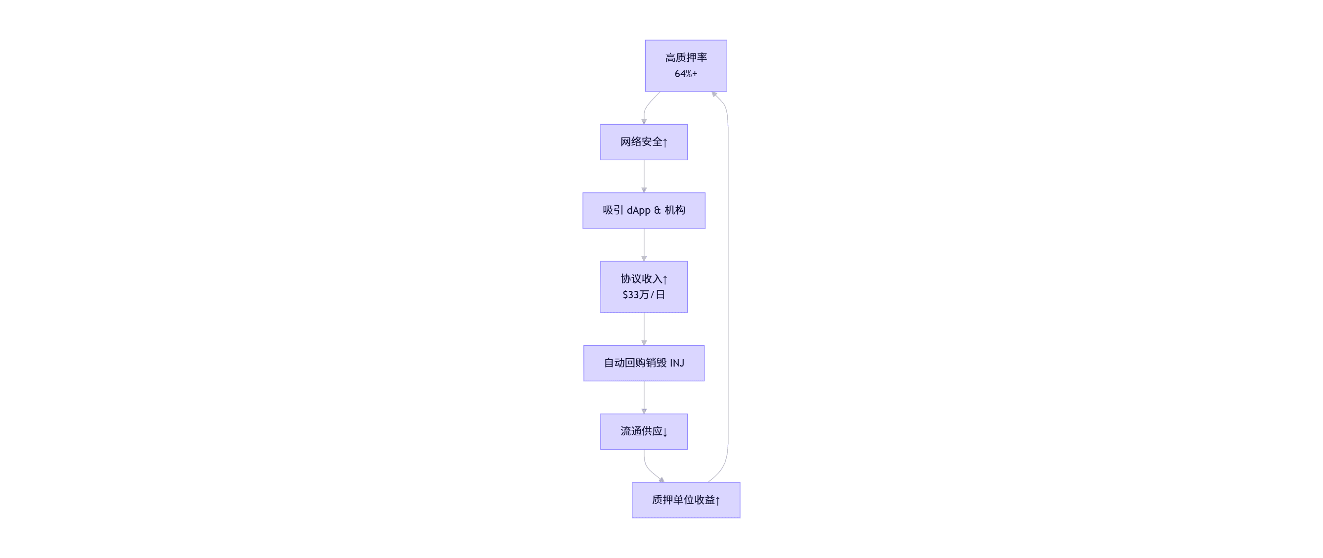 Injective has built a trinity self-reinforcing flywheel: staking ensures security → security attracts ecology → ecology generates income → income repurchases and destroys → destruction enhances staking value → more staking.