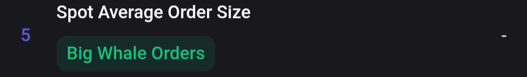 This is the average size of a spot order. In the screenshot, we see the text "Big Whale Orders," and it is highlighted in green. This metric shows how large the trades on regular (spot) exchanges are currently. We, as regular traders, make small orders. But if the average order size skyrockets, it means that the same "whales" or institutional investors have entered the game, buying or selling in very large chunks.