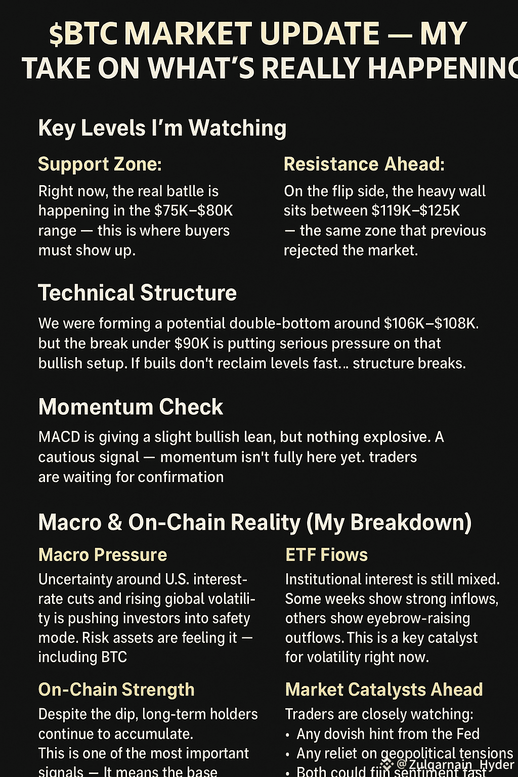 We were forming a potential double-bottom around $106K–$108K, but the break under $90K is putting serious pressure on that bullish setup.